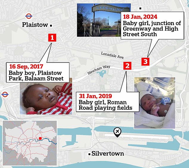 The trio of children were dumped in parks with the most recent - a baby girl - being found at just an hour after she was born in a shopping bag in Newham amid sub-zero temperatures in January.www.dailymail.co.uk