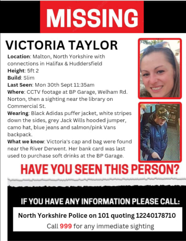 Found Deceased UK - Victoria Taylor, 34, last seen at home 9am, Malton North Yorks, 30 Sep 24.