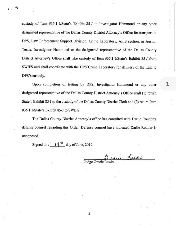 An order dated June 14, 2019, to DPS to run the print 85J through the AFIS database.