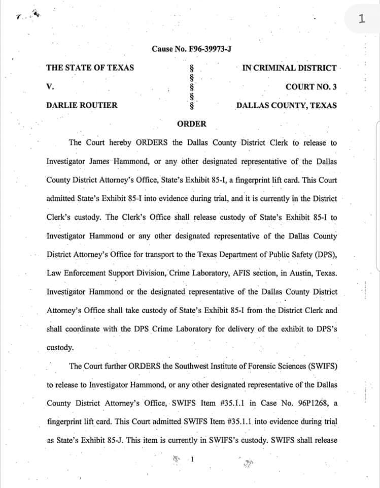 As the running of the print has been held in Abeyance until the DNA testing is complete, it would appear that has now been completed and Darlie is now in her Federal Appeal.