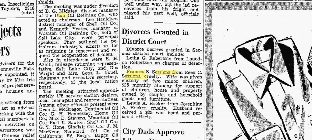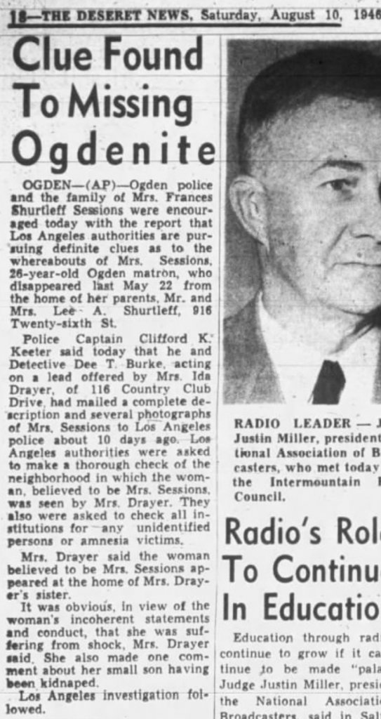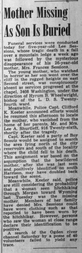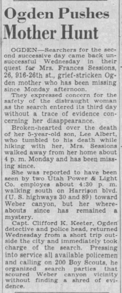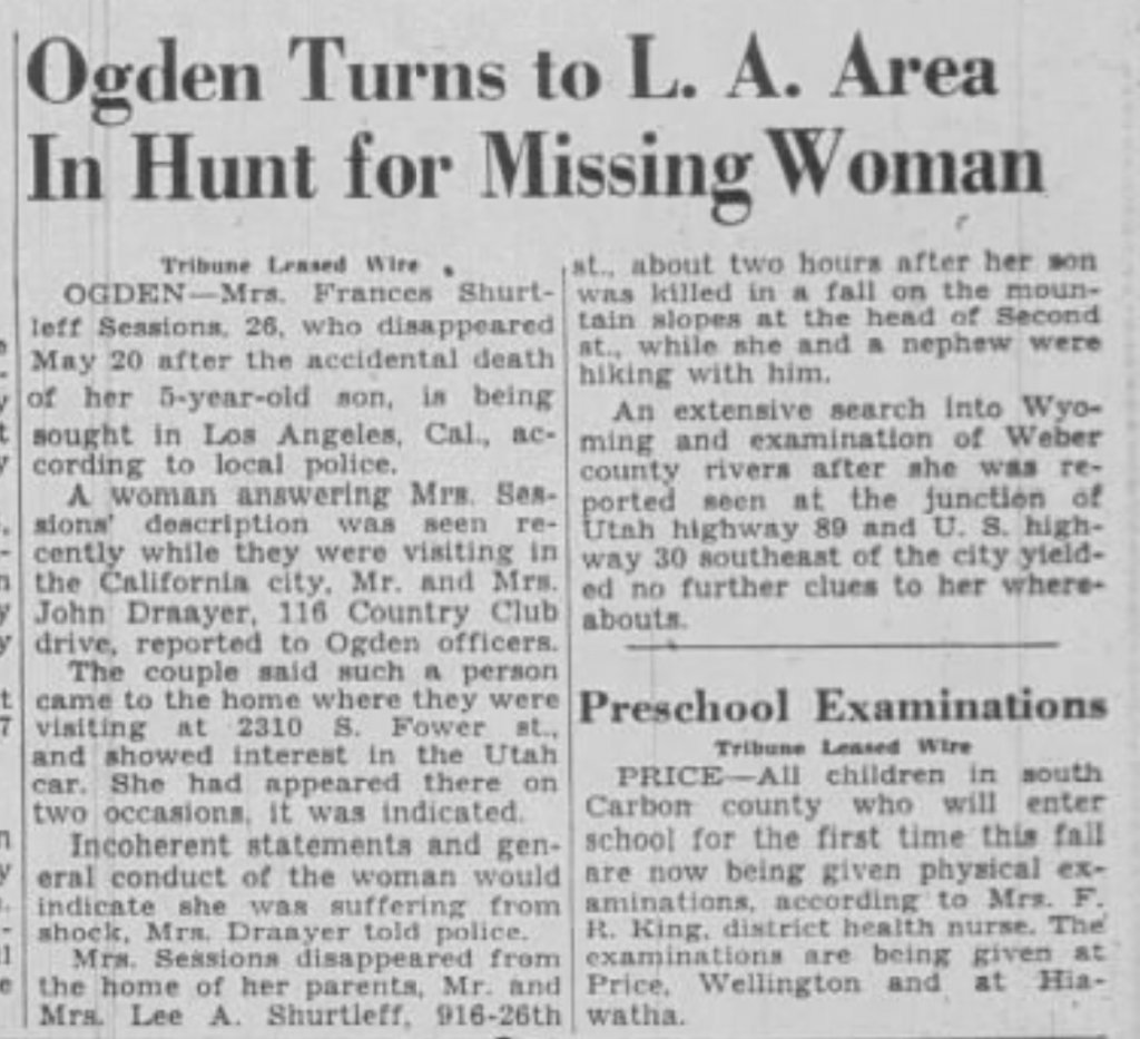 On 5/20/1946, Frances Taylor (Shurtleff) Sessions, her son, and her nephew, were visiting Frances’ father who was farming in the 100 Block above Harrison in Ogden, Utah.