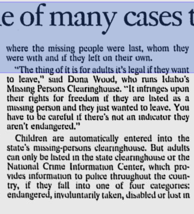 Missing since April 14, 1994 or May 7, 1994 from Salt Lake City, Salt Lake County, Utah.