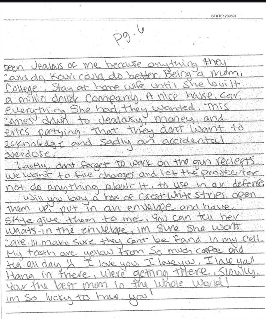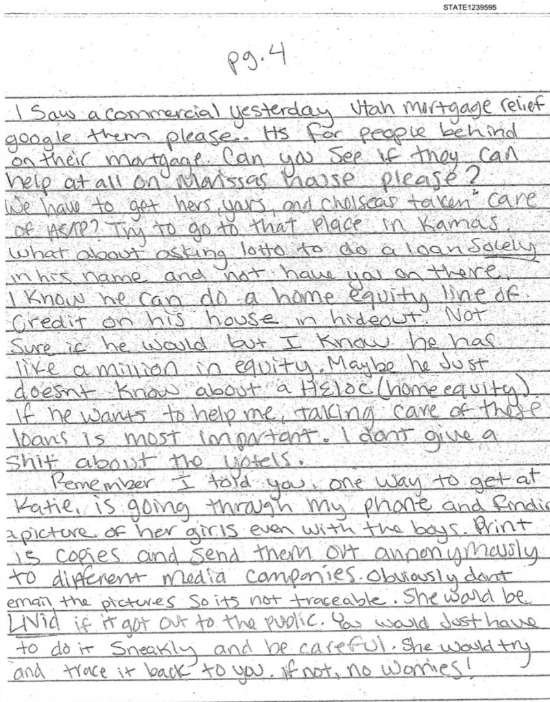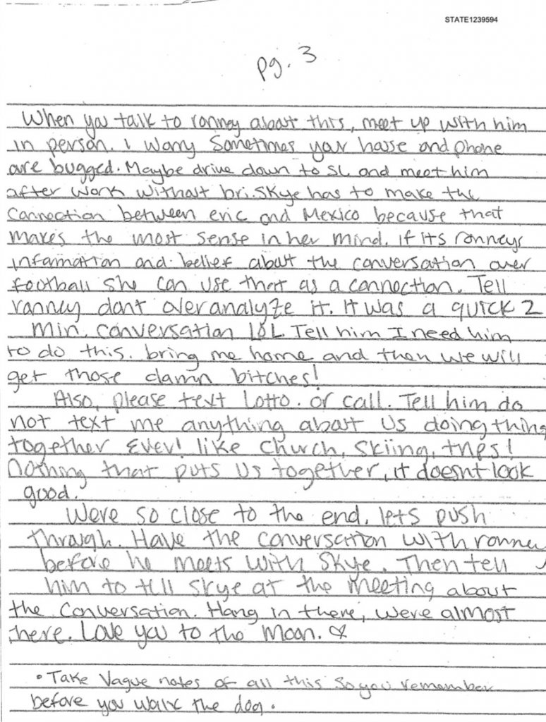 Kouri Richins' confiscated prison letter to her mother, Lisa Darden, in which she allegedly tries to frame her late husband, Eric, for fentanyl use. Summit County Attorney's Office