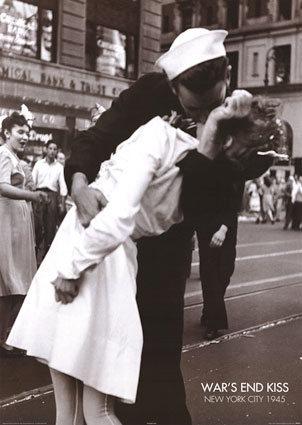 Two attachments to help illustrate the point. They are quite obviously images of the sailor and nurse in Times Square in 1945. The second one is the famous picture from Life Magazine. The first one is lesser known and shot from a different angle with different people in the background and completely disguising the fact the couple is in Times Square.