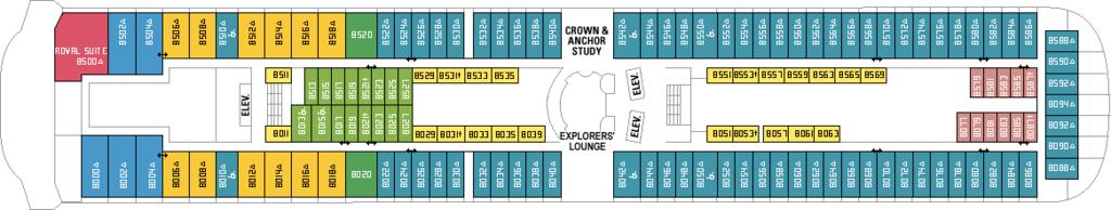 Rhapsody of the Seas stateroom 8564 is located on Deck 8. The cabin is located in the Aft section of the ship. Deck 8 is on deck #8 on Rhapsody of the Seas and there are 145 staterooms on the deck.
