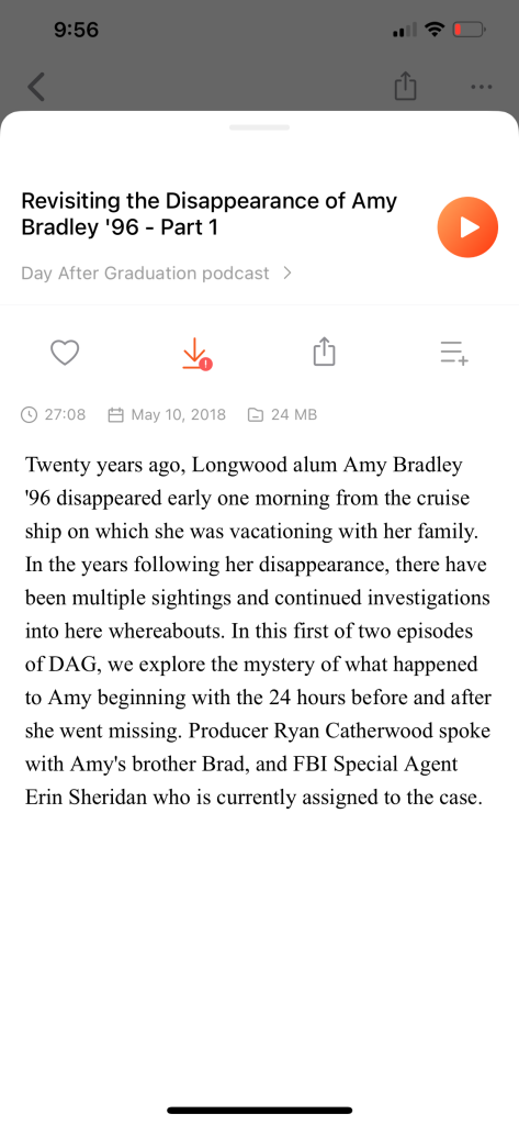 Awhile back I mentioned a podcast put out by Longwood University’s alumni affairs, and 2 episodes in 2018 were about Amy’s case and featured interviews with Brad and FBI agent Erin Sheridan (she was responsible for getting Amy’s poster back on the FBI’s site.)