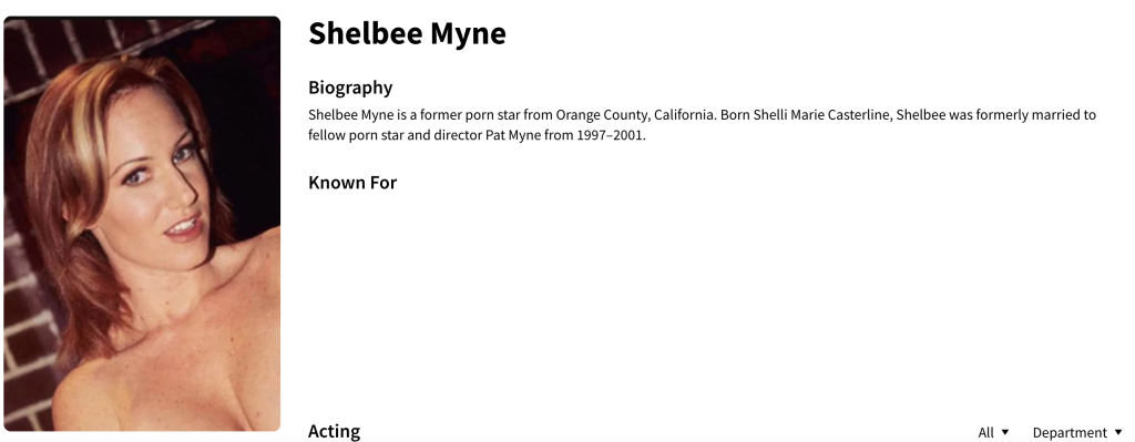Shelbee is actually Shelbee Myne, a woman who starred in adult films in the late 90s/early 2000s.