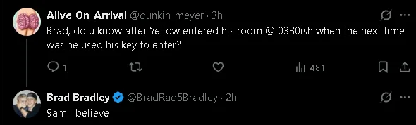 To me, the most suspicious thing is Brad’s lie-convo with Amy. It is made up wholly of lies to prove their narrative. Amy was groped by some dude (if anything, she put her hand on Yellow and held his hands)- outsiders involved, foreign, even!! Amy was excited to try to ride jet skis with Brad the next day (sometimes she can’t have jumped- she was excited. The girl I saw dancing was puking the next day, not doing water sports). And they both said I love you to each other, because Brad and Amy are the best buds in the world- so close that they appear to be dating!