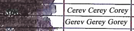 Okay, so don't accuse me of being a "Font Freak" but I think the first letter is a capital G because you can see it doesn't end in an open curl like the C does and you can see where it has the straight stroke up on the right. Compare it to that real clear C in Card. The last letter I think is a y because it has the extra stress on the left side like an italicized y does in Times.