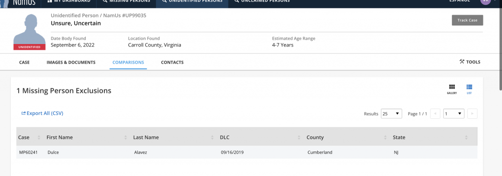 Very sad recent case added to NAMUS today: