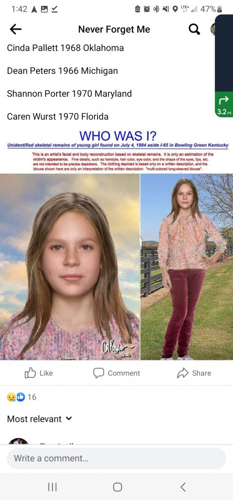 There is so much more that I have questions and information about but I am tired of writing. If anybody wants to discuss her case or has any thoughts please reach out...