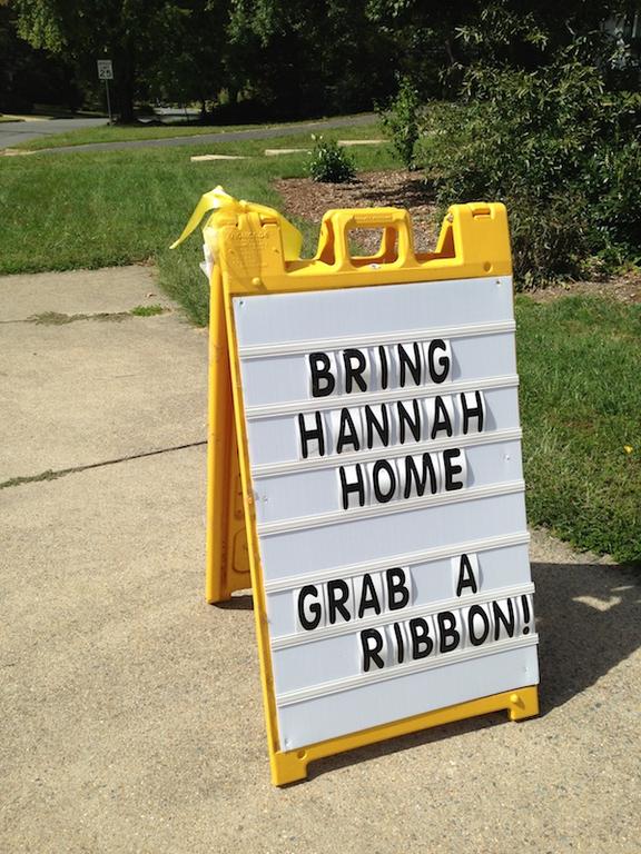 I mentioned on the first thread that we live about 1/2 mile from Hannah's parents (we do not know them). The entire community is very concerned because this literally strikes so close to home. Our community association sent out an e-mail asking neighbors to put up yellow ribbons. Here are a couple of photos I took on the way home today: