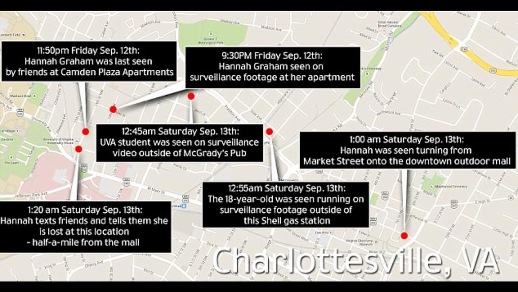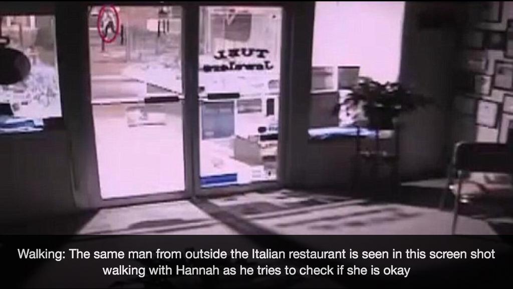 I'd be terrible at viewing security cameras for a living. But, behind Hannah there seems to be a few people walking in a group. The guy turns around to talk to his friends. I wonder if they noted anything strange.