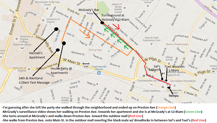 I missed a lot of pages last night because of it being Friday night and having to tend to my actual life ;). Can anyone tell me if it has been discussed if Hannah could have perhaps "met" Dreads at another location that evening? For instance, during the time frame that she's unaccounted for--after leaving the party and before showing up on the video outside the pub? Maybe she ran into him either outside or inside some place and he struck up a conversation with her? So that later, she was more at ease seeing her "new friend?" Dreads was taking quite a gamble, being a large black man approaching a slight young white woman in front of a bunch of other men (I'm making an assumption that pack of boys was also still in the vicinity). If she really HAD never seen him before, the reaction she had to him would have been very unpredictable I would think--would he gamble on that in front of others?