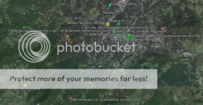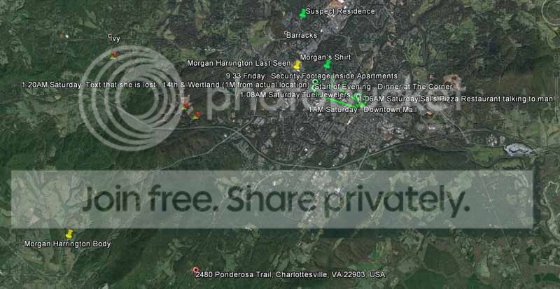 Found 2480 Ponderosa Trail, Charlottesville, VA 22903 as a previous associated address. Hope they are searching there today. Look at the satellite image on google maps