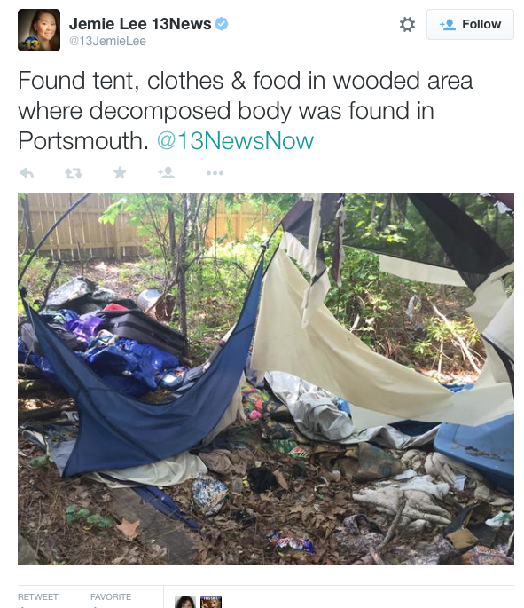 I can't ever get tweet links to load on tapatalk so here's the photo, posted by a reporter, of the homeless camp where the body was found.