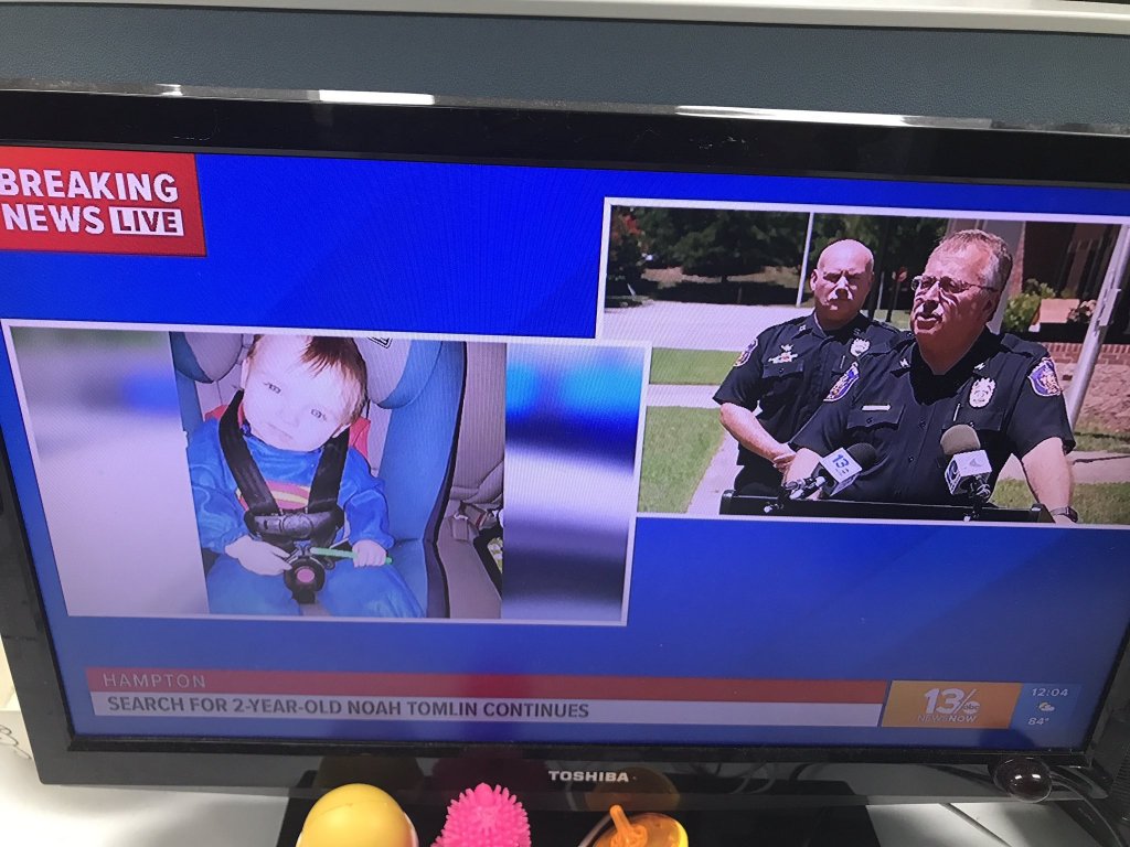 "We are still hopeful we will find him safe and sound in some location, but we are looking at all potential aspects that this case could lead us to." - @HamptonVAPolice @ChiefTerrySult speaking about the search for 2-year-old Noah Tomlin