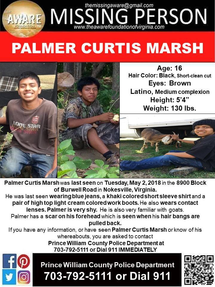 Palmer Curtis Marsh was reported missing on May 4 after being seen leaving his residence on foot toward a wooded area located on Burwell Road in Nokesville two days earlier.