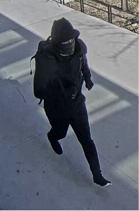 Wow. This happened on Jan 17th so this person having a mask is actually out of the ordinary, way before COVID. The all black get-up as well as the mask is also just bizarre, it looks like something out of a movie. I can't exactly tell where this photo was taken in relation to the building, all I can see is the black railing in the back. I no longer live in the area so I can't look to compare anything unless I visit at some point. My initial reaction is it doesn't look like anything directly outside of the building, but I could wrong.