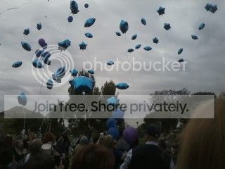Just got home from the candlelight prayer vigil for Travis at his resting place. It was wonderful being with so many people that really cared about him and are anxiously awaiting for a 1st degree DP verdict! Tanisha and her husband were there and she shared some wonderful stories about Travis. I thought pictures would be out of taste but I did take pics of when we all let out blue balloons up to the heavens with messages to Travis on them..Hopefully they came out...Oh, BTW, the local newspaper was there taking pics and will be doing a story (most likely) in tomorrows paper. It's called the Press Enterprise here in Riverside, CA!!