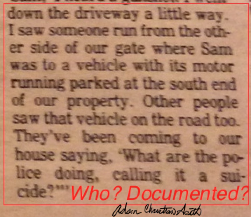 2. By his wife's father who was dying. He said, If I die, you die, buy a witness in the records. Was this witness just dismissed out of hand? His wifes father died they inherited a $2 million estate. This is a huge inheritance. Nikki submits herself that she believed her father had put a hit out on my father Sam Smith because her father disliked mine.