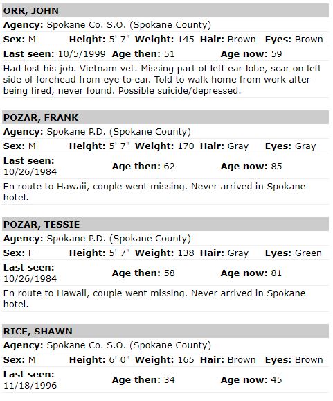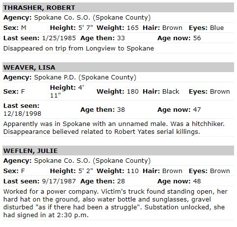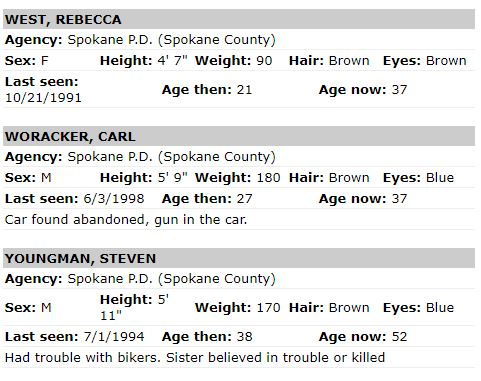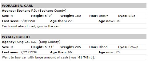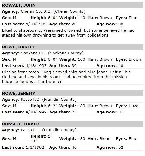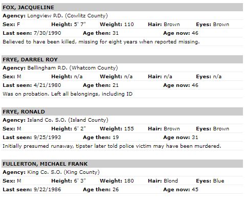 It was this case that reminded me about them, because many of these cases existing prior to 2002 in Washington records are only just being entered into NamUs now, and if you look on the third file you'll find Darrel Frye's entry.