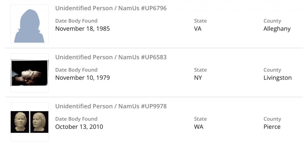 NamUs ID NamUs #MP20347 NamUs #UP16805