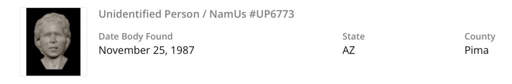 By bringing people, information, forensic science and technology together, NamUs helps resolve cases.www.namus.gov