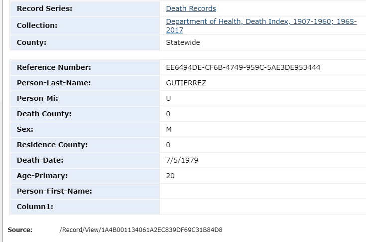 Gutierrez was last seen in Wenatchee, Washington on August 1, 1979. He was working in an apple orchard at the time. He has never been heard from again.