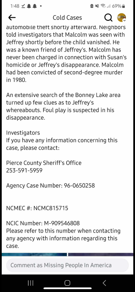 Hes not in NCMEC anymore either! Id say hes been located