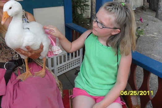 The lovely picture of Jenise posted upstream with her cat reminded me of this photo of Jessica, who also loved animals. She is seen in many photos with animals; this one is my favorite photo of Jessica, the one with the duck: