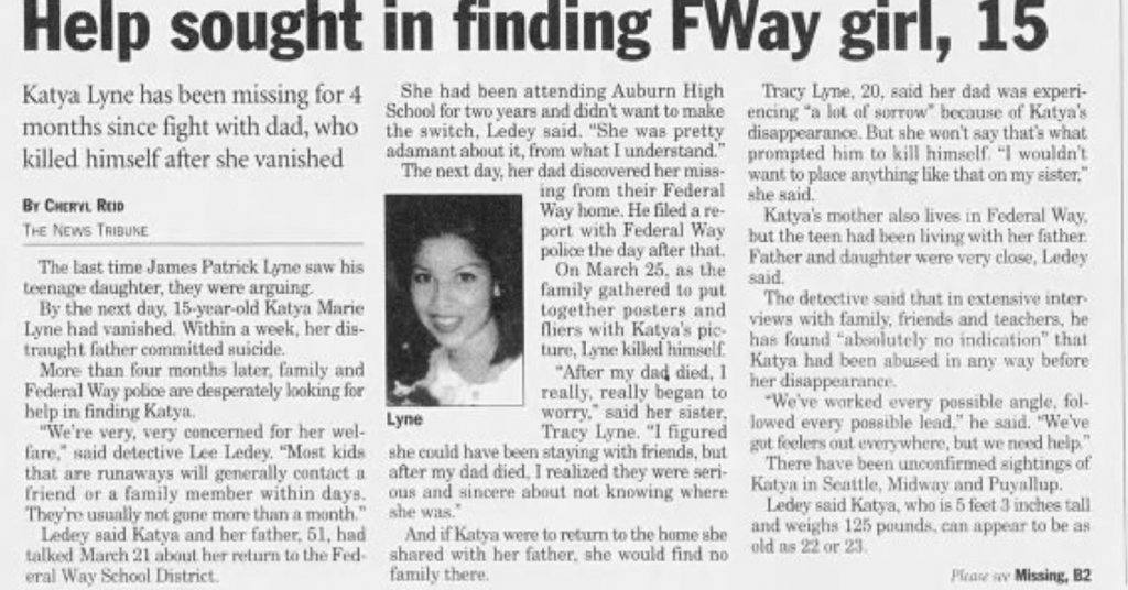 Katya was living with her father in Federal Way, Washington in 1997. She had a disagreement with him on March 21, 1997 over school. She was attending Auburn High School and he wanted her to transfer to Federal Way High School, and she didn't want to.