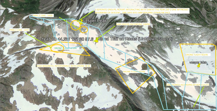 The SAR team said they have searched all trails she would have possibly taken, and nearby areas. I think it is safe to say that after 3+ weeks of continual searching by family, friends and professionals, she is most likely in a very difficult to reach or not easily visible area. No signs of even a single piece of her gear or clothing has turned up yet indicating that she is not easily able to leave signs to be noticed, like some have talked about. What happened to the dog scenting on something or someone on the southern side of the mountain. Did they ever run that to ground with additional dogs or searches? The phone pings and the video footage have given the best leads and yet no answers.
