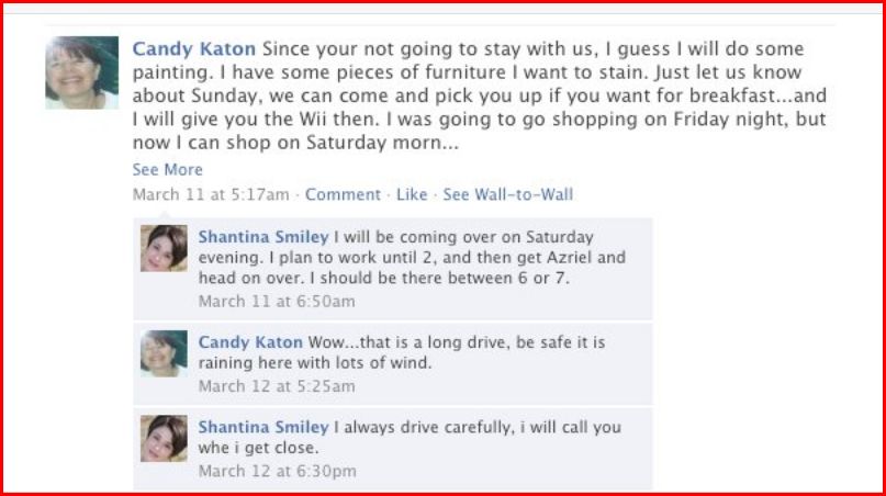 Shantina called me twice around 4:15 to let me know she was heading out.