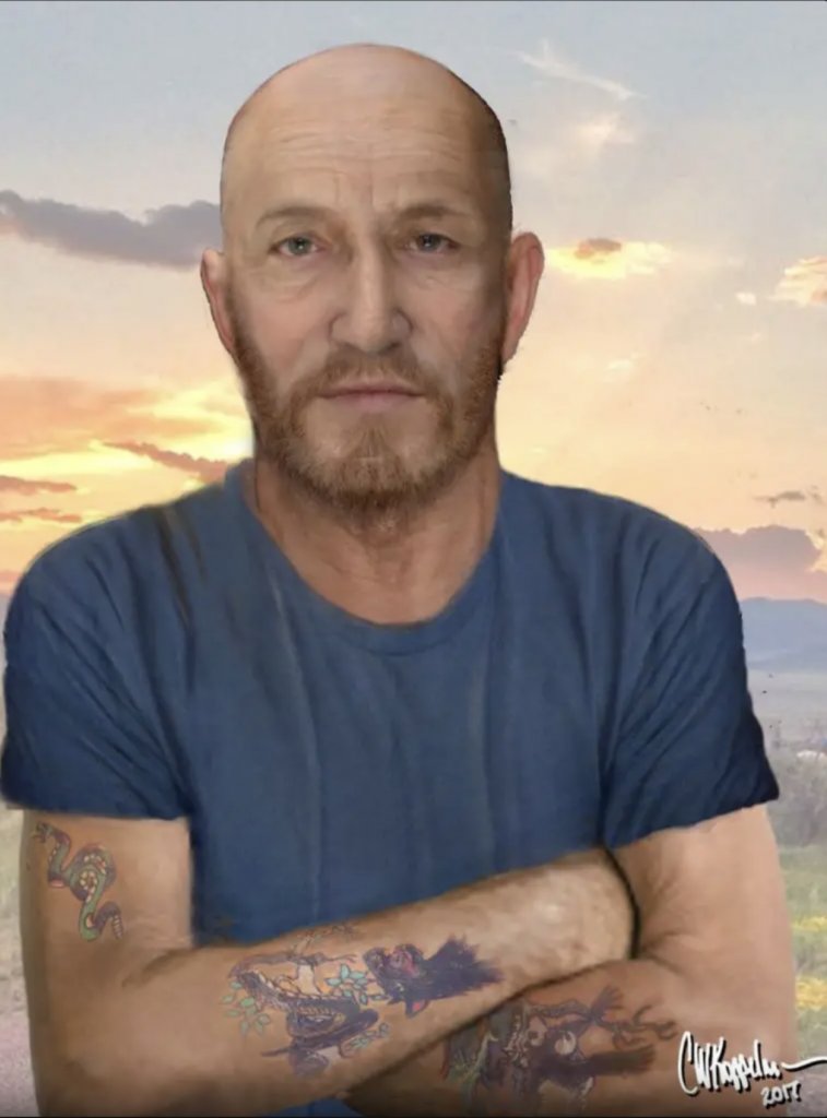 I saw Carl's new depiction on FB and someone mentioned one of the tattoos or part of it being a wolf and possibly related to a 'hell hound' urban legend of New Jersey. Taking off from that, I started searching missing men from there. I came across this guy and particular the nose, missing teeth on the NAMUS skull, and a scarring on the chin of the skull matching up with the description of the missing: https://www.findthemissing.org/en/cases/737