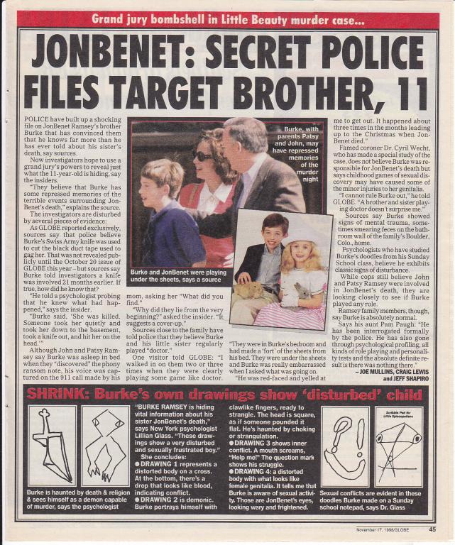 In the picture John was flying away in this plane, indicating he perceived his father as "distant and remote." "His mother was smaller than the figure representing Burke's self-portrait, and Dr. Bernhard thought that she didn't hold much sway or influence over him." And of course he didn't draw JB. Burke's comment to Dr. Phil on why he didn't draw JB was weird, he said he didn't really know but she was gone so he didn't draw her. Bernhard said most children who lose a sibling keep drawing them in family drawings for months after.