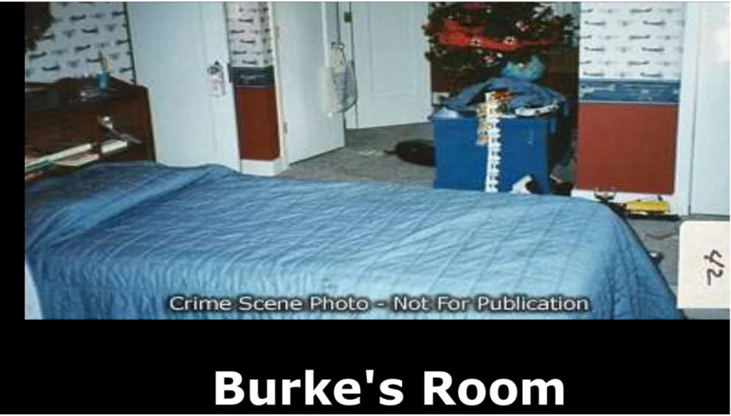 Why do we find Burke's bed made and his bedroom look pretty normal on the day she was discovered?