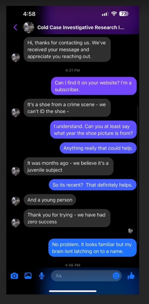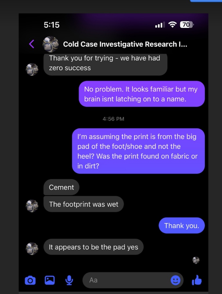 The print is from months ago, so a current brand. It is the ball of the foot, believed to be a juvenile, the print was made in wet cement and they are very grateful for everyone looking because they have had zero luck.