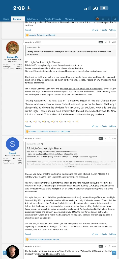 The font-pitch on Black-Orange was 15px. It's the same on Websleuths_2025 and on the High-Contrast version. The difference is the font.