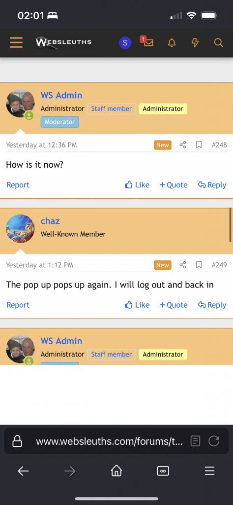 It's doing it again on the Vallow thread since a tweet was posted Found Deceased - ID - Joshua Vallow, 7, Tylee Ryan, 16, Tammy Daybell, 49, Charles Vallow, 62, Oct 2019 *Arrests* #65