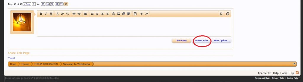 1. To upload a photo select the "Upload a File" button. It is under the reply box next the "post reply" button.