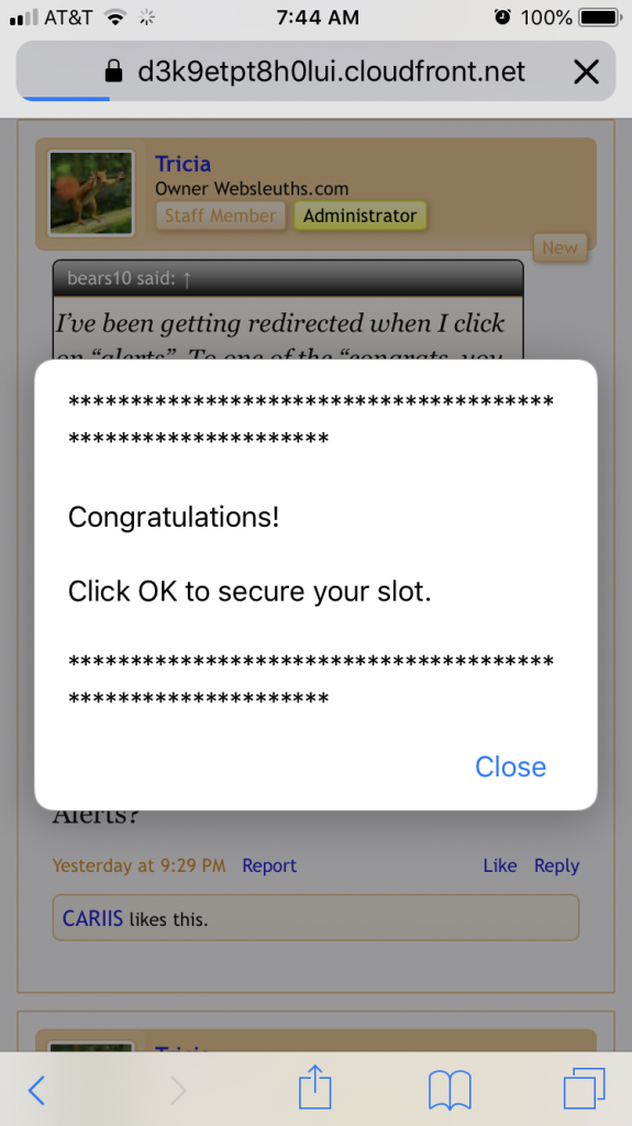 Sure, see attached, I just got these two back to back while trying to view your post from my alerts.