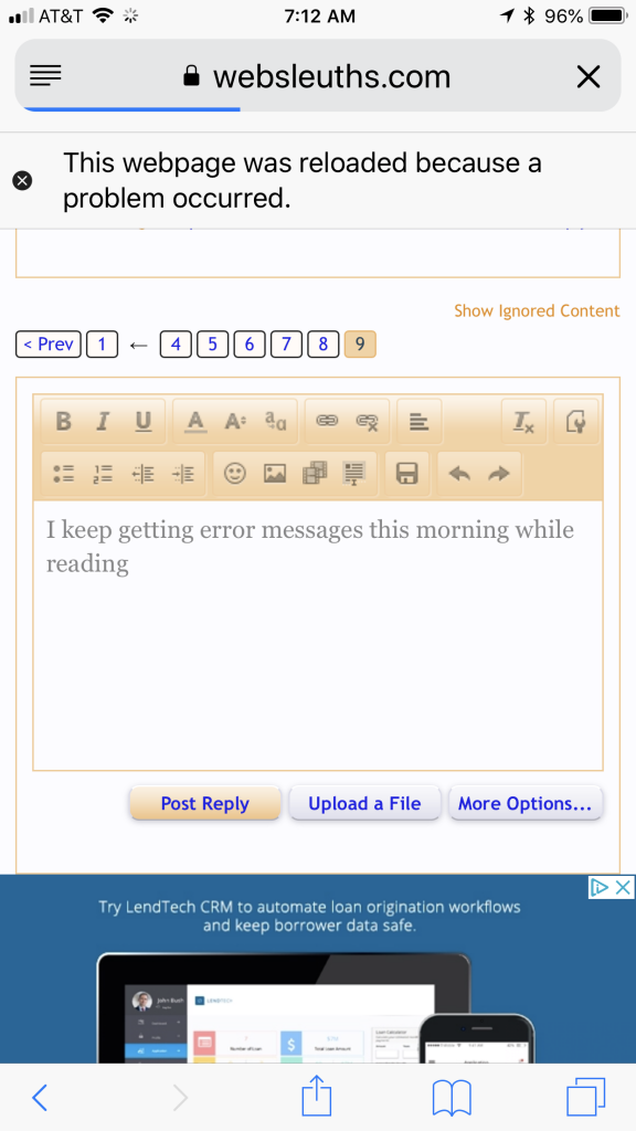 I keep getting this error message this morning while reading. Hadn’t happened in over a week.