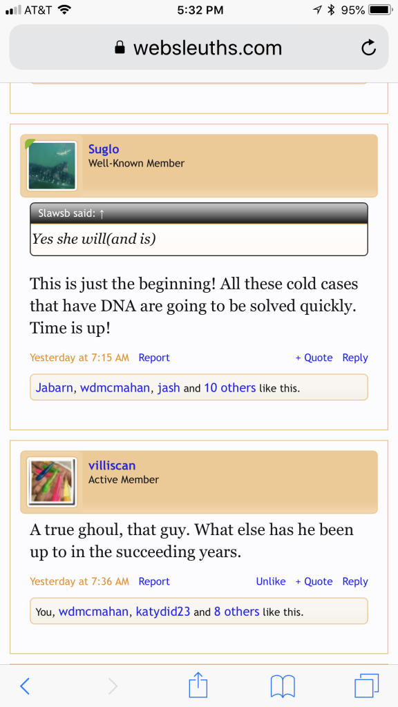 I’m still finding it hard to find new threads to watch. I check the new posts and new threads lists daily. I’ve found the best way to find new cases to follow is to click on the profile of a member I am familiar with from past threads, see what they’re commenting on and look there. More often than not they’re commenting on a new thread I’ve never seen before. On tapatalk there was a ‘trending discussions’ feature which was where I found new threads, I’m not finding anything similar on here unless I’ve not discovered it yet.