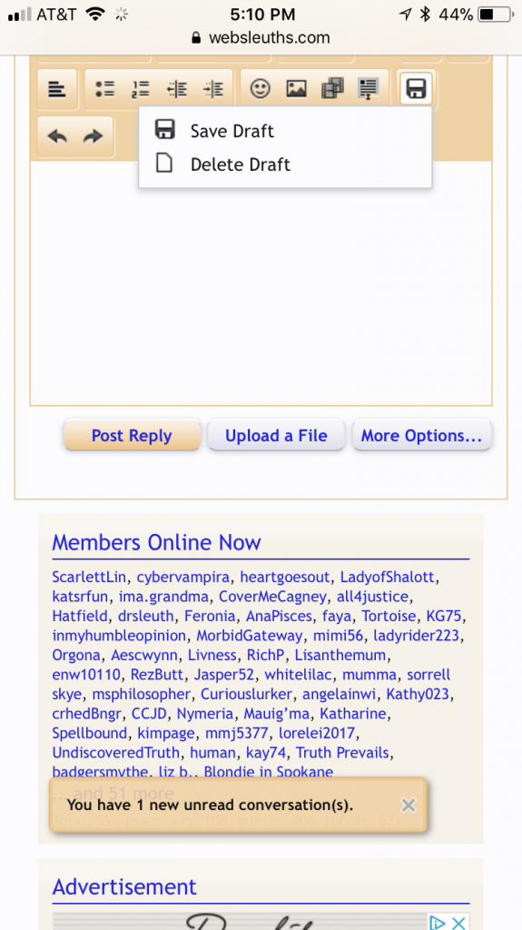 Right now, under forums I see watched forums and watched threads. I’ll go check out how to watch.brbCan you see where to watch thread on your iPad? I can see it on my MacBook, but Katharine doesn't appear to see the same things as me.