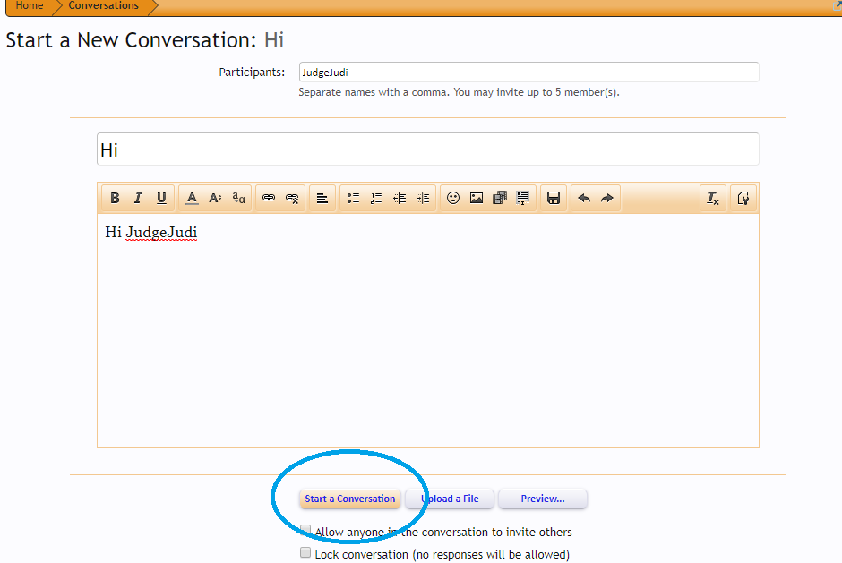 I went to my Inbox, clicked on "Start a conversation", typed it all up but can't see how to send it. I thought last time I just hit the Enter key.