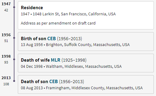 I'm not sure where our GB was living in 1956. This is the problem I have is connecting our GB to the above GB as I can't confirm any further addresses after 1947 when he was living at 1048 Larkin St, San Francisco.