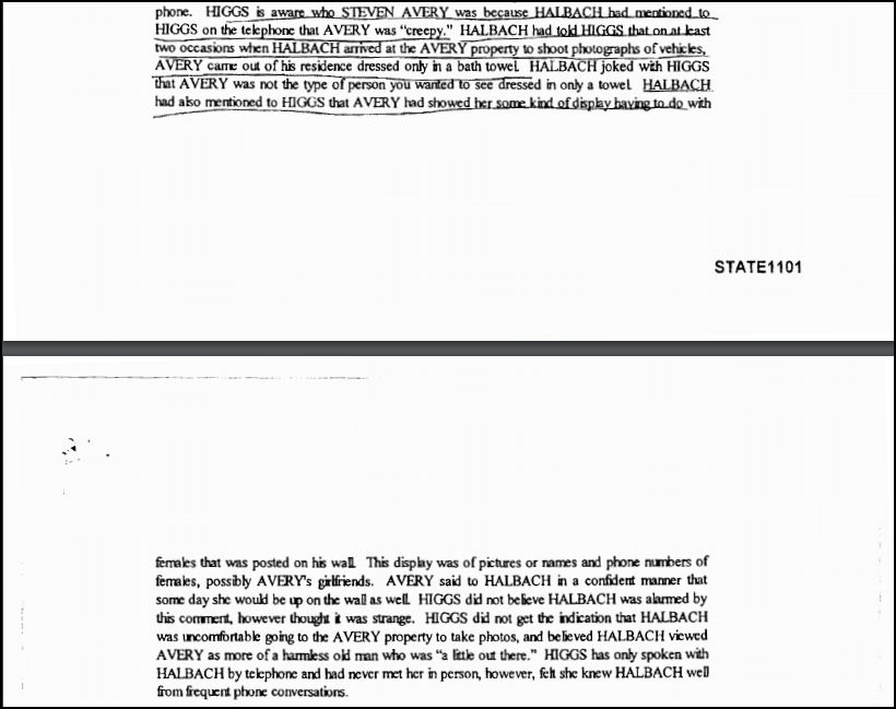 There is no reason in the world that someone in Avery's family would decide to follow Halbach so they could run her off the road to rape and kill her. Steven is the one who told other family members he liked Halbach's body and arranged the appointment because he wanted to see her and who when he knew she was coming would wait in a towel to meet her according to what Higgs said that Halbach told her. See attached statement.