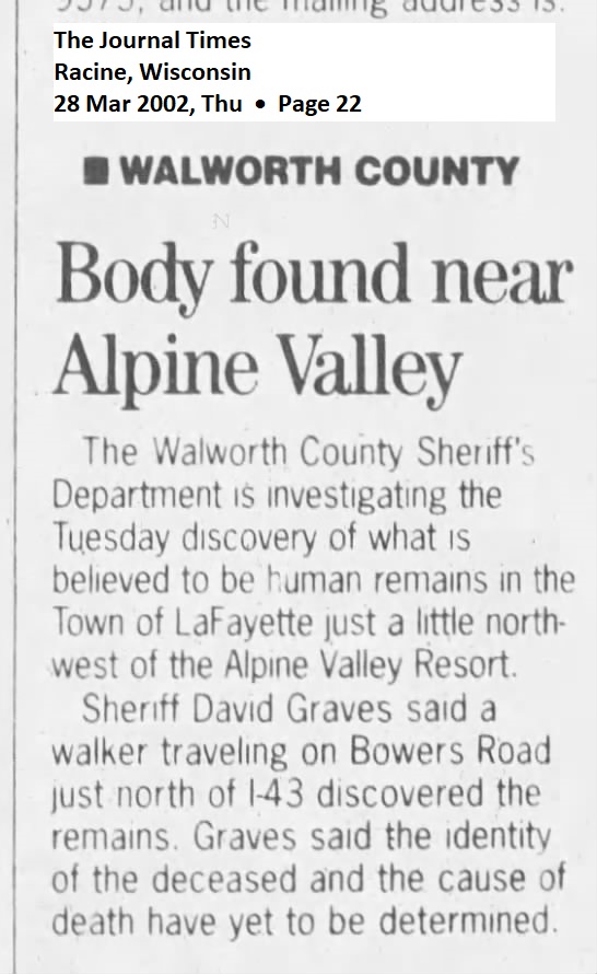 Years before those two cases my uncle found a woman's body while driving his work truck. I do not know the name. I only know it was in the area.