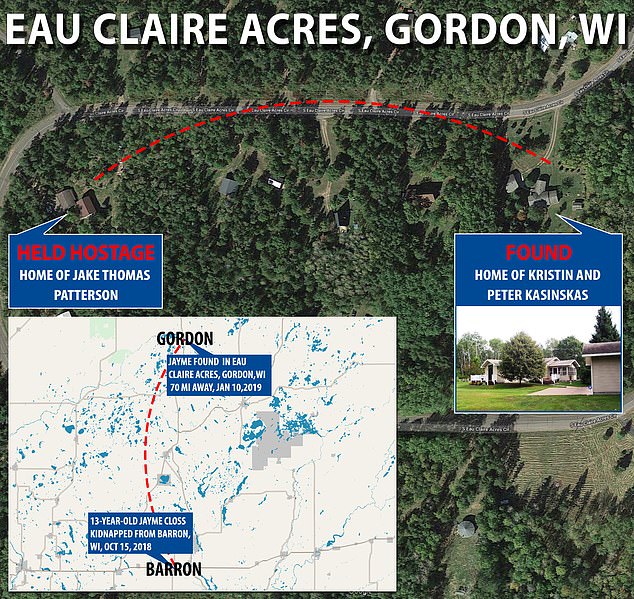 “She said that this person’s name was Jake Patterson, ‘he killed my parents and took me,'” said another neighbor, Kristin Kasinskas. “She did not talk about why or how. She said she did not know him.”